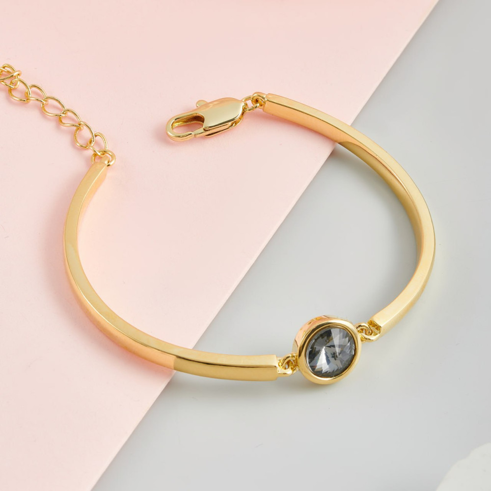 Стильный браслет с жесткой основой и регулируемой цепочкой — легко подстроить под любой размер запястья. Гальваническое гипоаллергенное покрытие безопасно для чувствительной кожи. Вставка из циркона дарит нежное сияние. Комфорт и эстетика в одном аксессуаре.