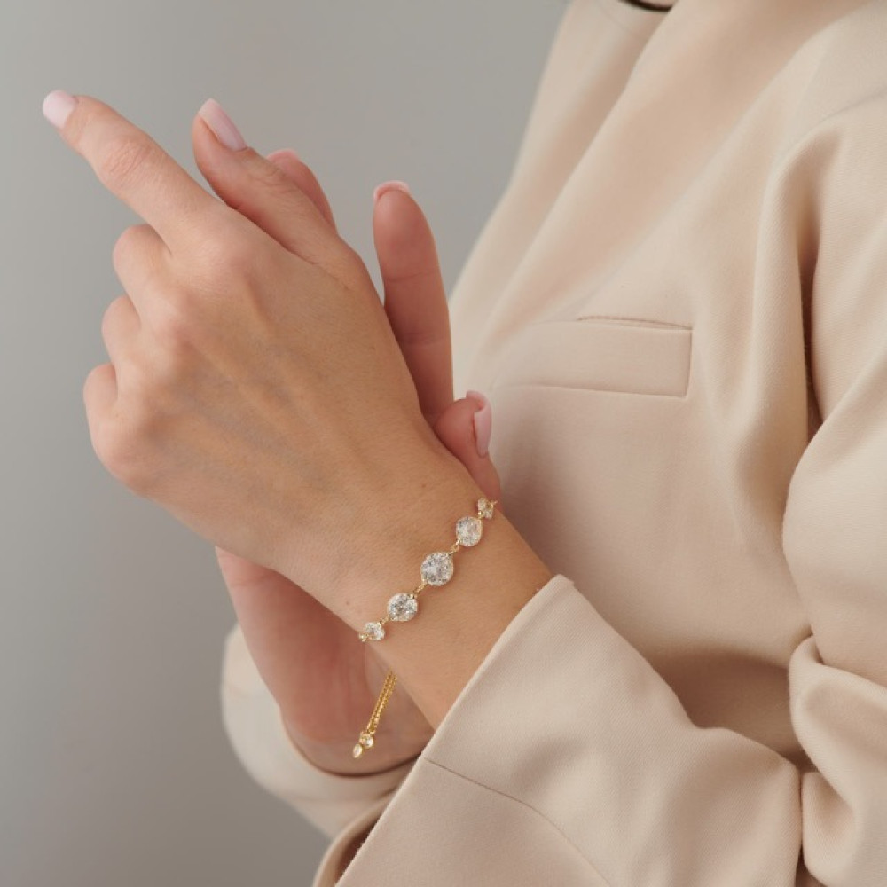 Безупречный комфорт в каждой детали. Этот браслет выполнен из гипоаллергенного металла, который дарит ощущение легкости и не стесняет движений. Сияние цирконов добавляет нотку аристократичной сдержанности, а продуманный замок-затяжка делает посадку идеальной — браслет словно создан специально для вас.