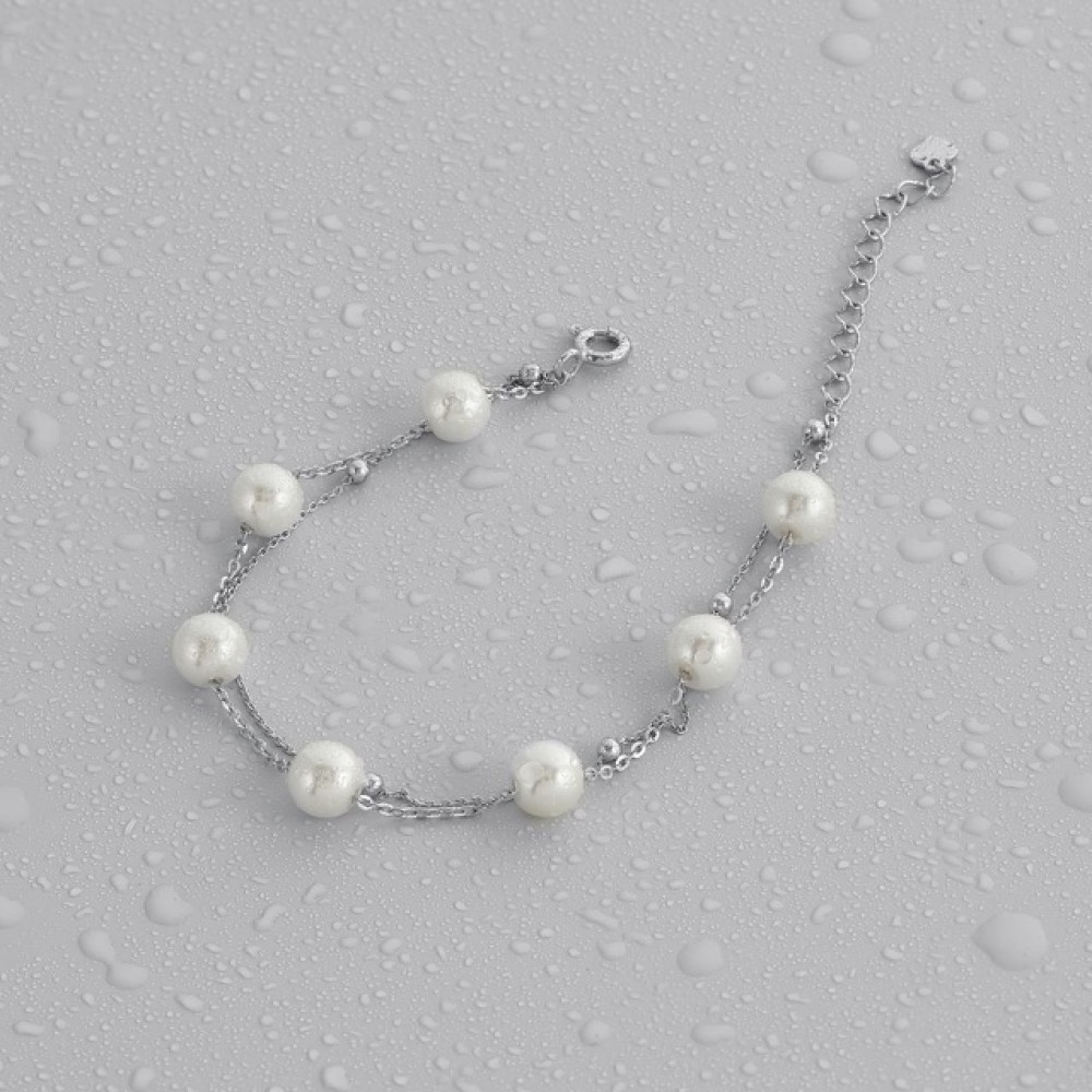 Технические характеристики Купить Браслет двойной с жемчугом Майорка серебристый в Минске