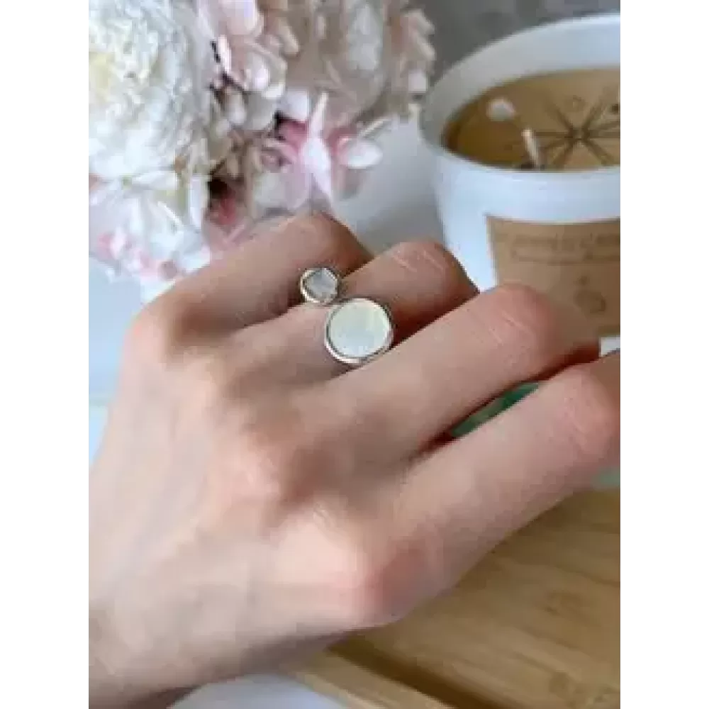 • Кольцо безразмерное двойной круг с перламутром