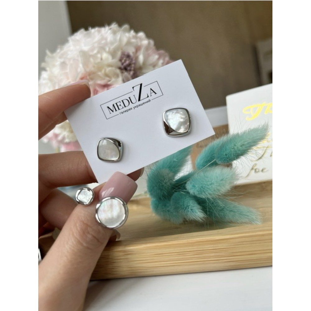 На складе Код товара: KD08463 Серьги квадрат с вставкой перламутр в золоте