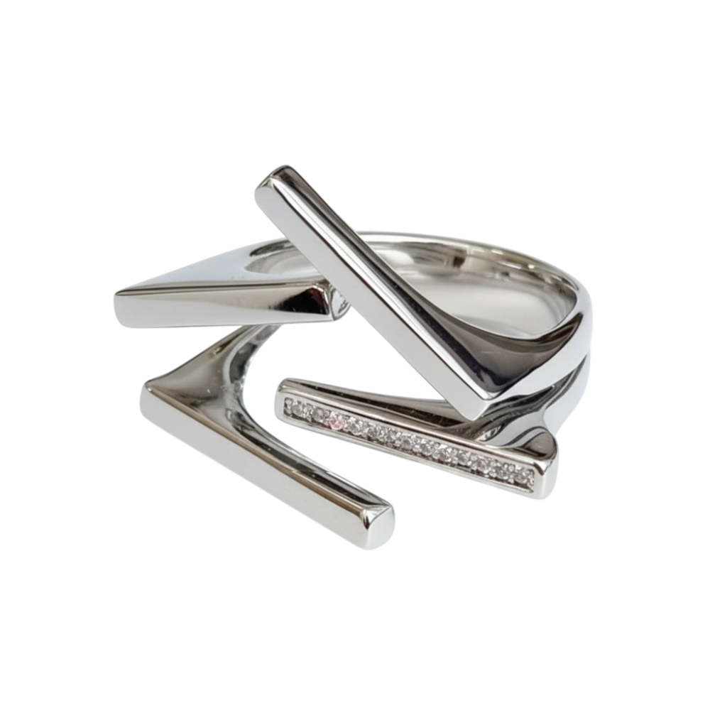 Купить Кольцо асимметрия с цирконами в белом золоте в Минске 53 BYN