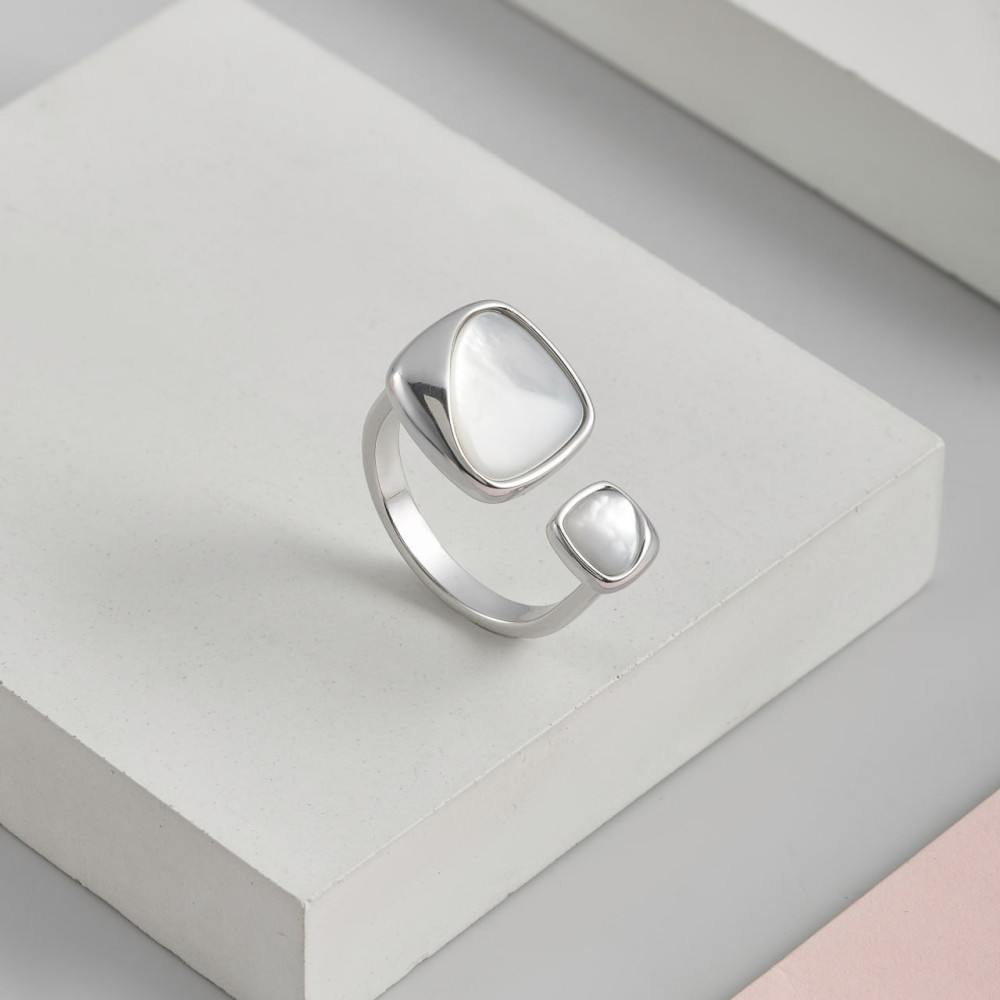 Купить Кольцо безразмерное с перламутром серебристое в Минске