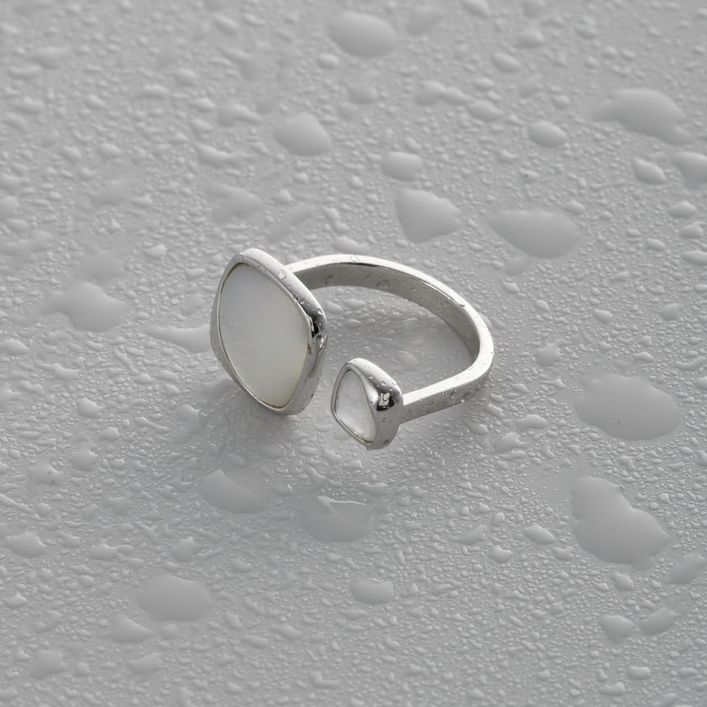 Технические характеристики Купить Кольцо безразмерное с перламутром серебристое в Минске