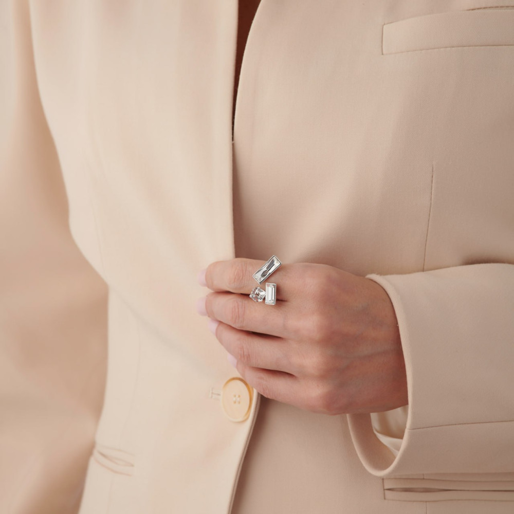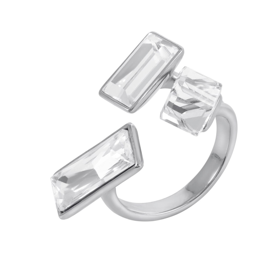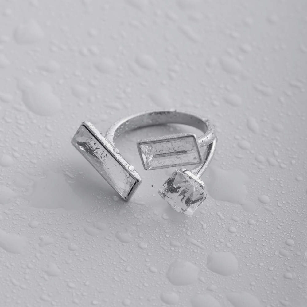 Кольцо регулируемое с белым камнем в серебре Meduza Crystal