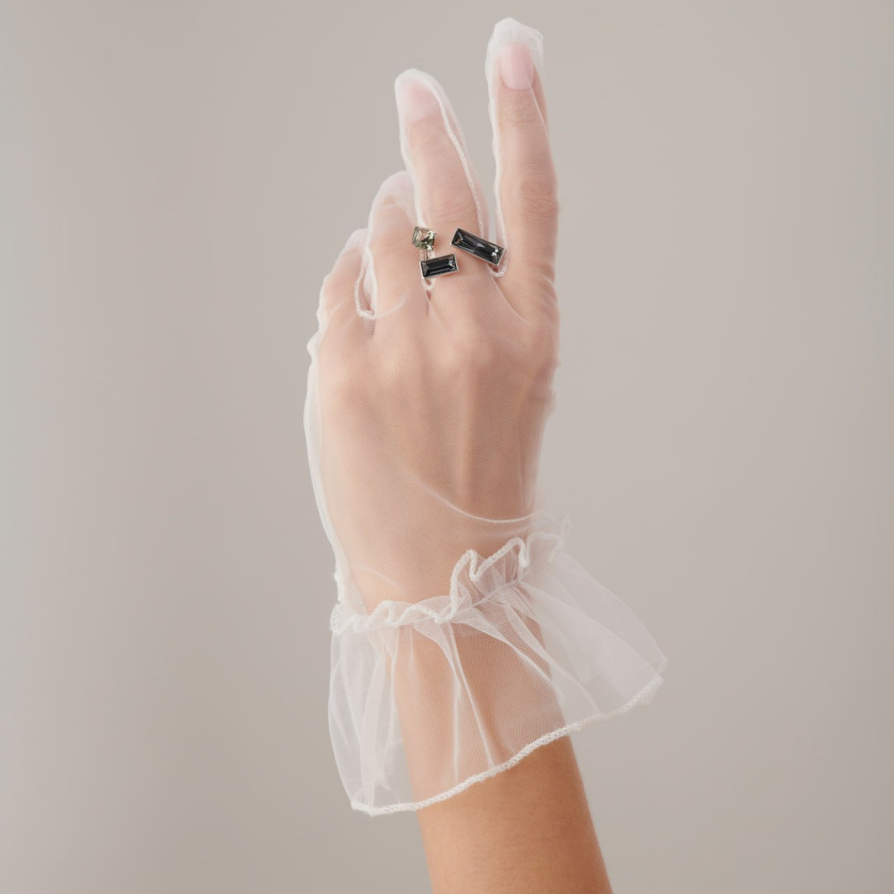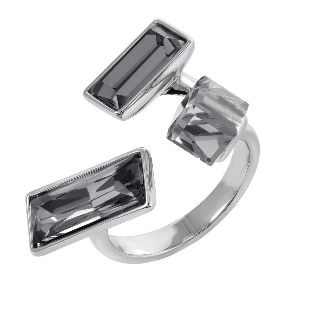 Стильное безразмерное кольцо с черным камнем циркон. Разомкнутая основа позволяет легко регулировать размер под любой палец. Гальваническое покрытие родием обеспечивает благородный блеск и полную защиту от воды.
