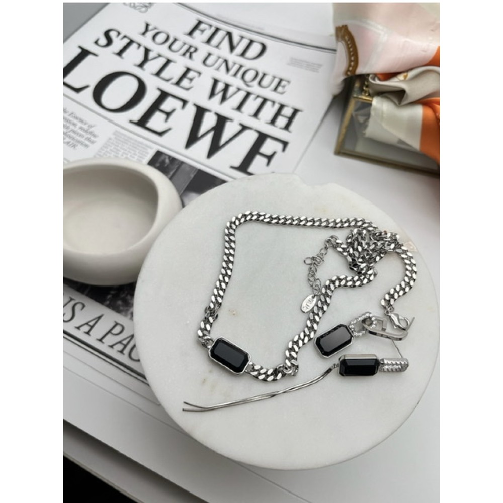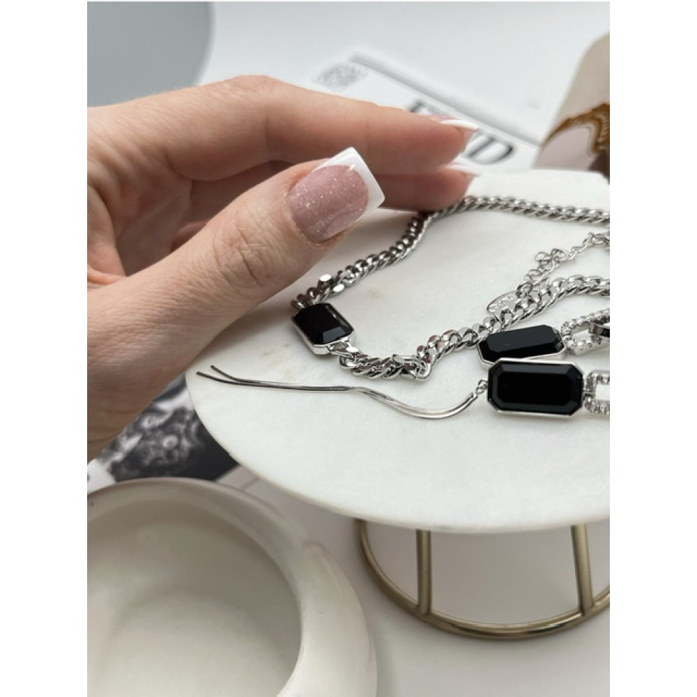 Купить Подвеска цепь с чёрным цирконом в серебре в Минске