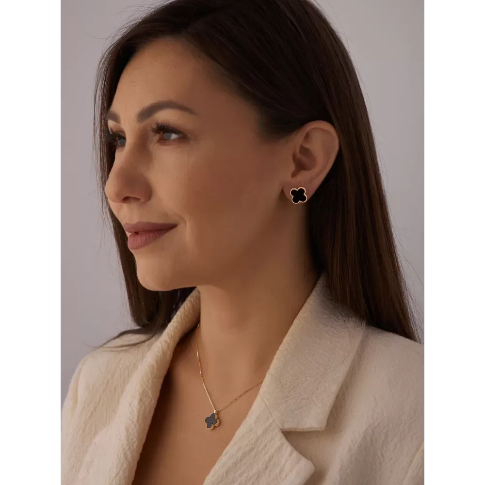 Купить Подвеска на цепочке Клевер черный ( золото) в Минске