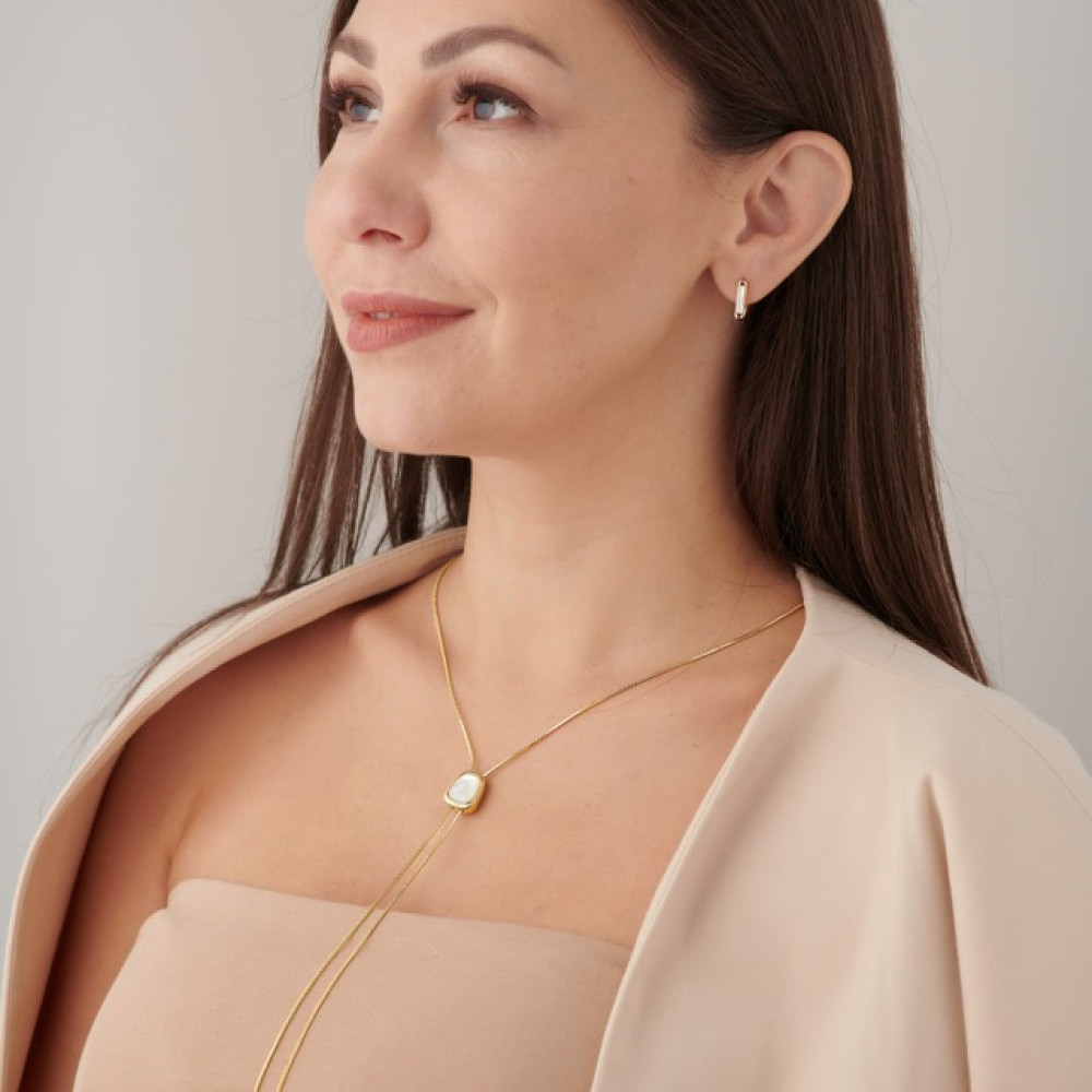 Колье галстук с вставкой перламутр в золоте Meduza Crystal
