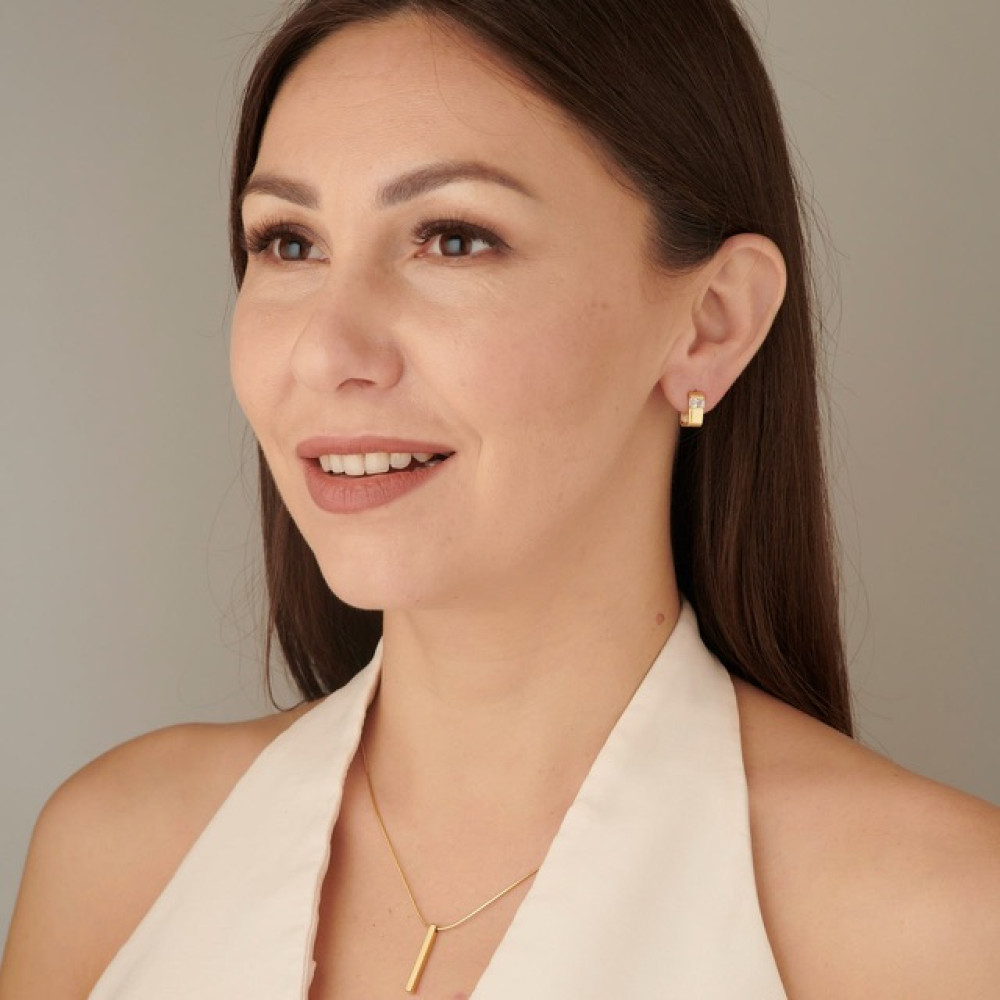 | ПокрытиеГальваническое покрытие лимонного золота 18К | ВставкаЦиркон | Вид застежкиСкоба |