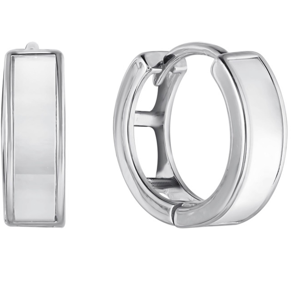 Технические характеристики Купить Серьги колечки с перламутром серебристые в Минске