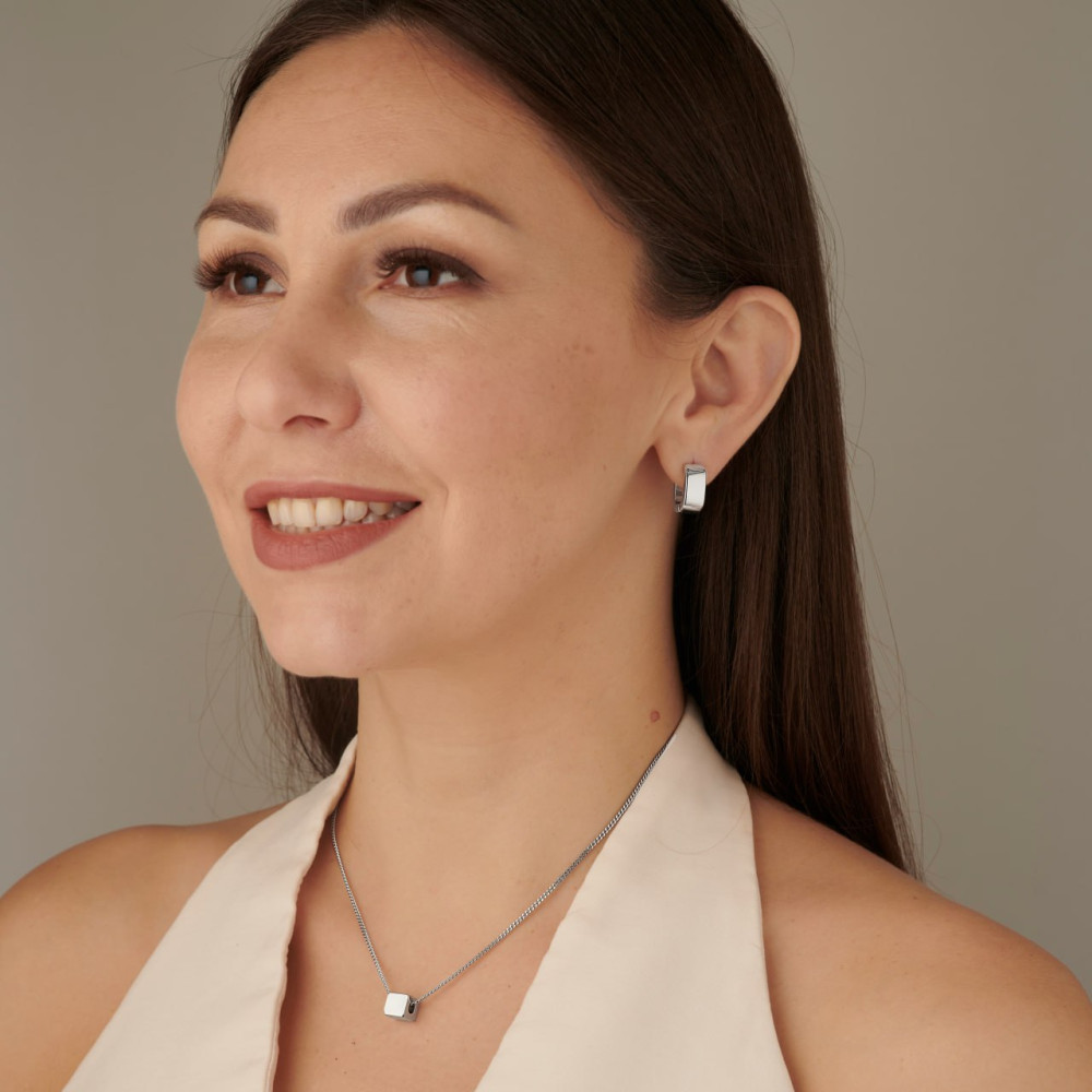 Технические характеристики Купить Серьги квадратные серебристые в Минске