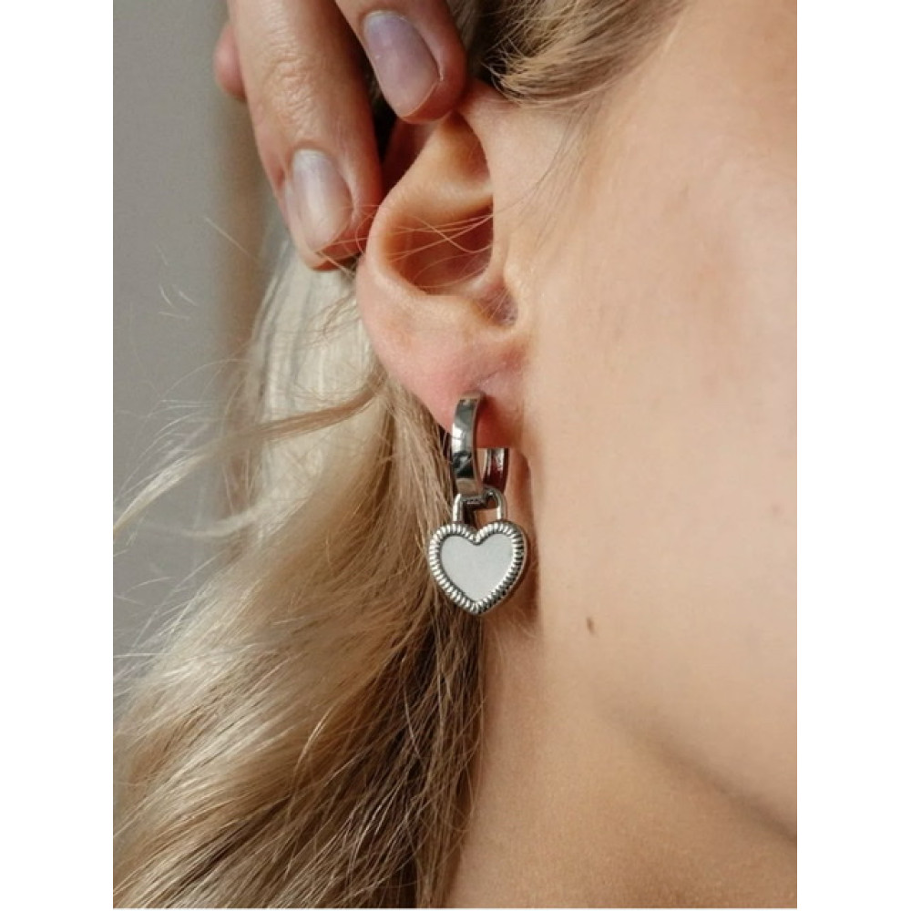 Технические характеристики Купить Серьги двухсторонние сердечки на серебряных кольцах в Минске