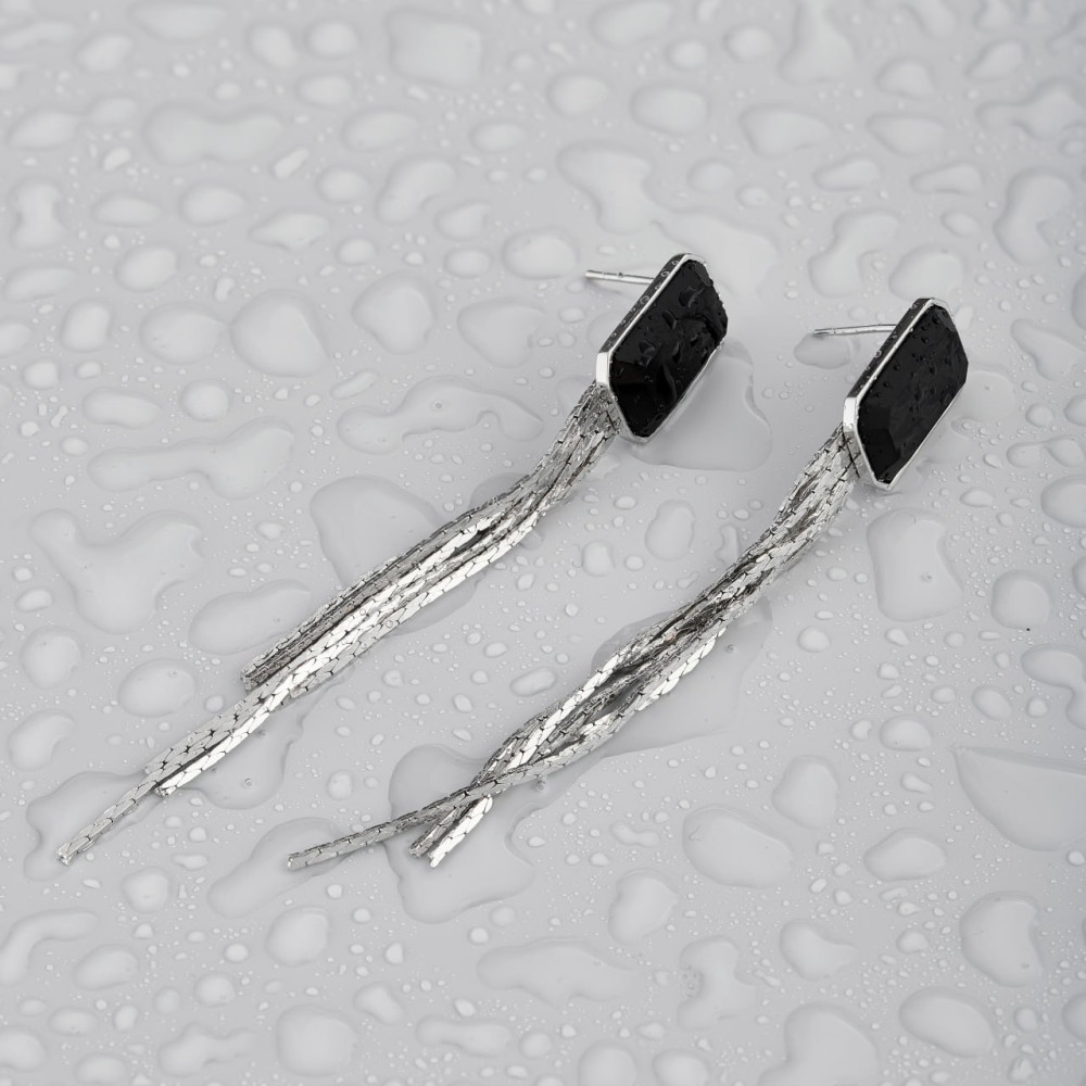 Серьги выглядят эффектно, и практически не ощущаются на ушах, ведь они изготовлены из легкого, безопасного, гипоаллергенного материала, с вставкой камень циркон.