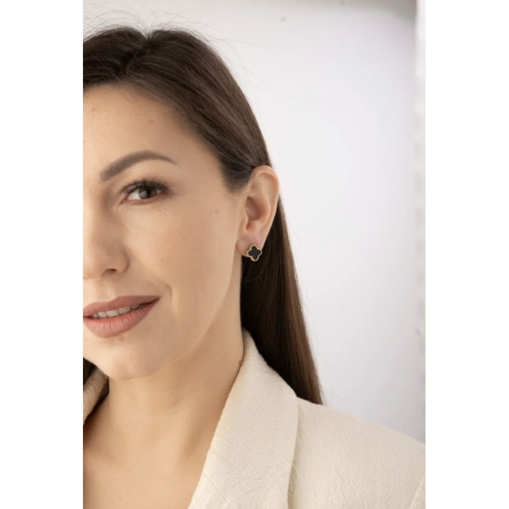 На складе Код товара: UP00238/1 Серьги Ванклиф золотистые с черной вставкой
