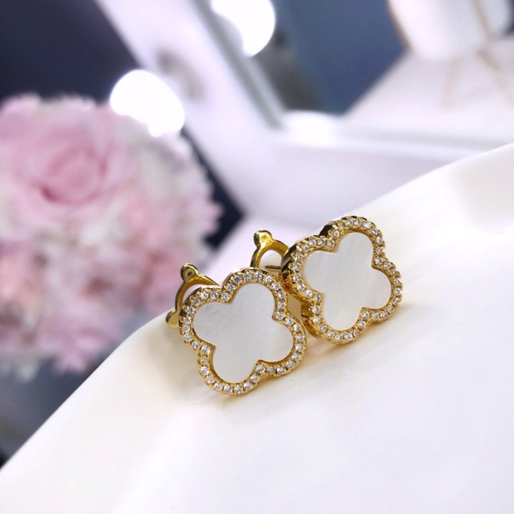 Технические характеристики Купить Серьги Ванклиф золотистые с перламутром на английском замке в Минске