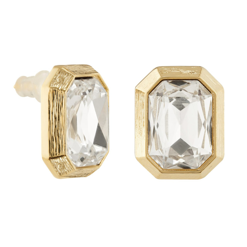 Серьги прямоугольные с белым цирконом в золоте Meduza Crystal