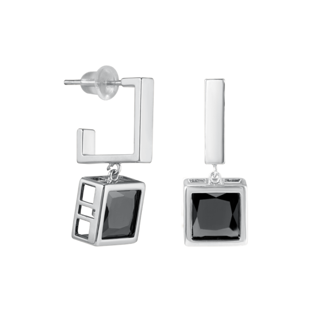 Технические характеристики Купить Серьги с чёрным цирконом серебристые в Минске