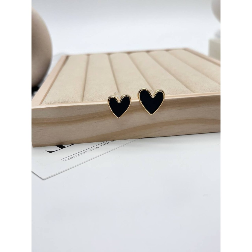 Красивые, удобные, легкие пусеты в форме изящных сердец. Из качественного бижутерного сплава, украшены черной эмалью. Впайка гвоздика из серебра 925 пробы бережёт ваши ушки от раздражения.Гвоздики легко вставляются в ухо, и имеют силиконовые заглушки.