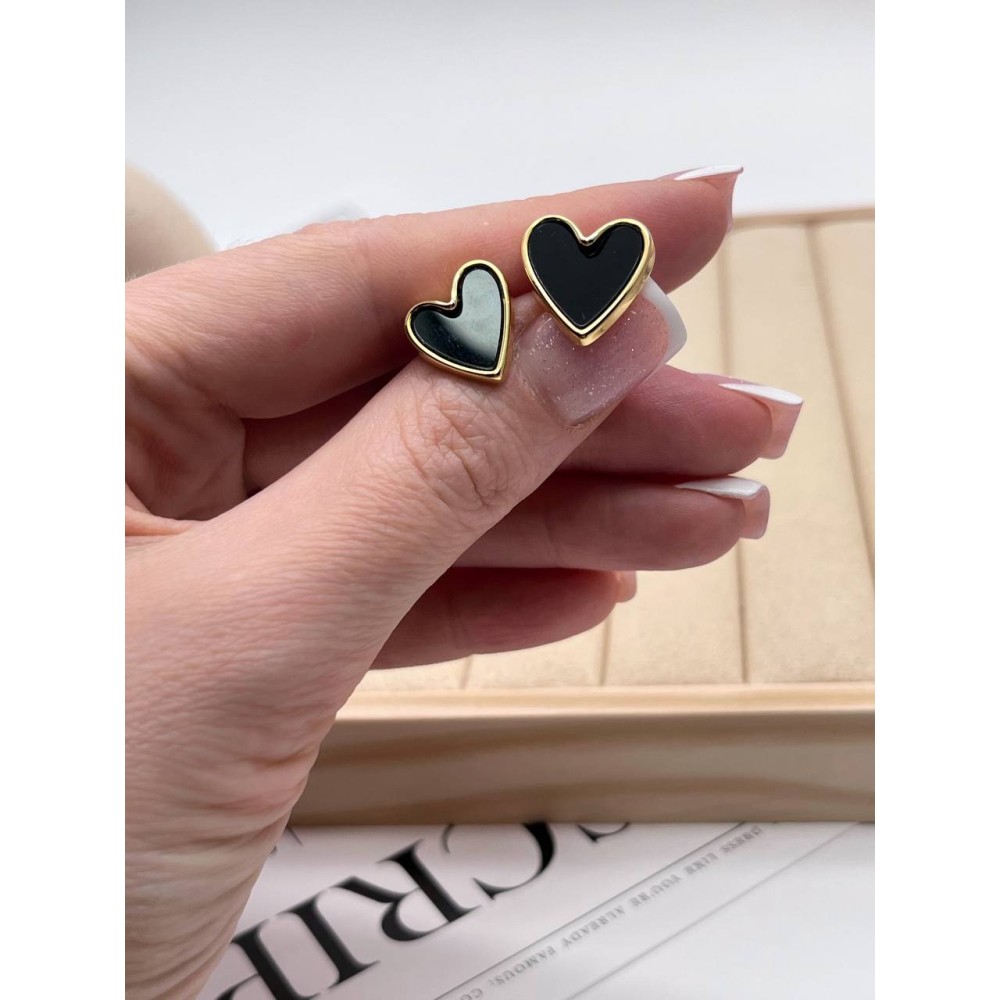 Технические характеристики Купить Серьги сердечки черные в золоте в Минске