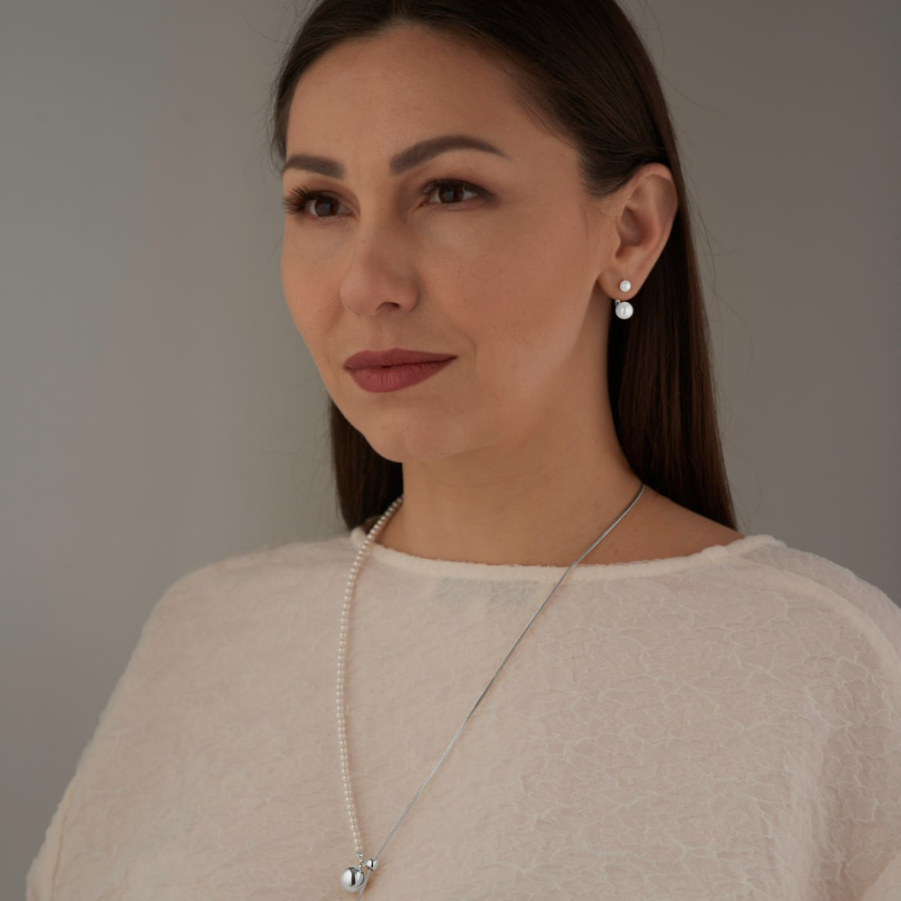 Купить Серьги Диор с жемчугом Майорка серебристые в Минске 51 BYN