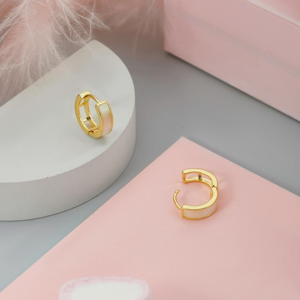 Технические характеристики Купить Серьги колечки с перламутром в золоте в Минске