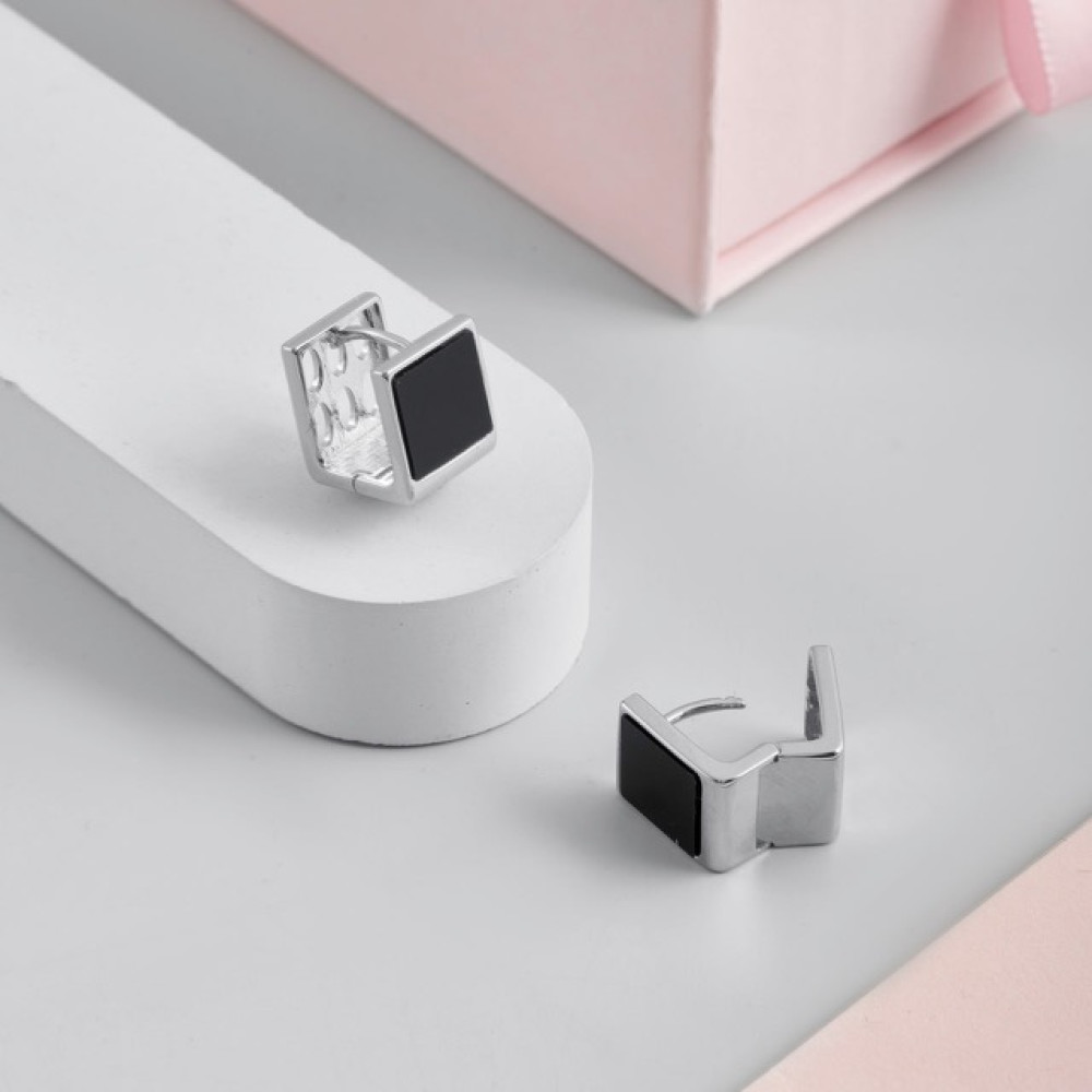 Технические характеристики Купить Серьги кубы с черной вставкой в Минске